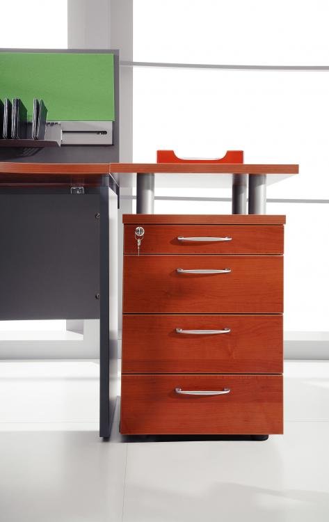 SWING to system mebli klasycznych o konstrukcji płytowej sprawiających mimo wszystko wrażenie lekkich. Efekt ten został uzyskany poprzez podniesienie blatu roboczego ponad panelami bocznymi na metalowych tulejach o wysokości 3 cm. Cechą charakterystyczną są też zaokrąglone narożniki biurek i dostawek.